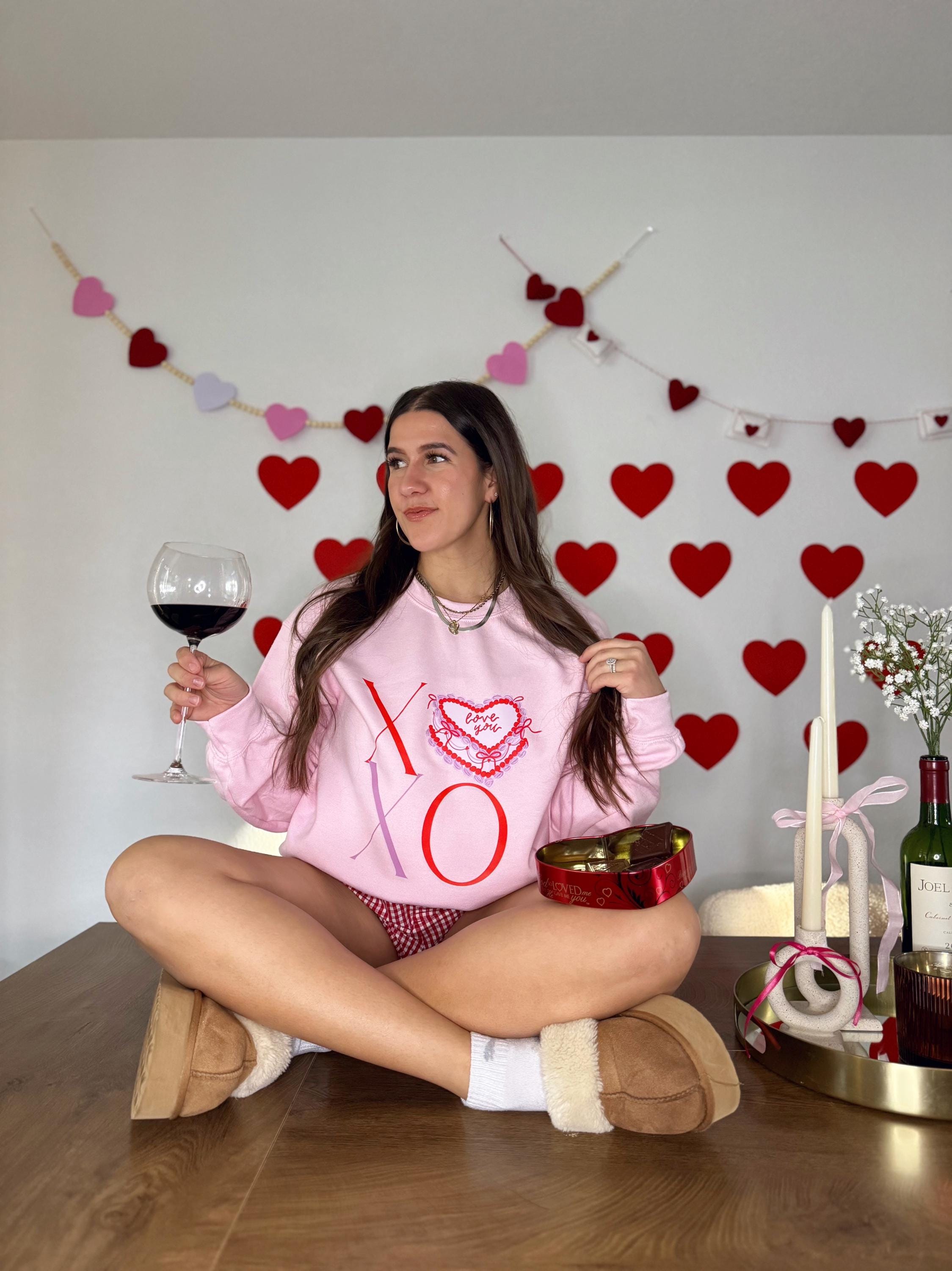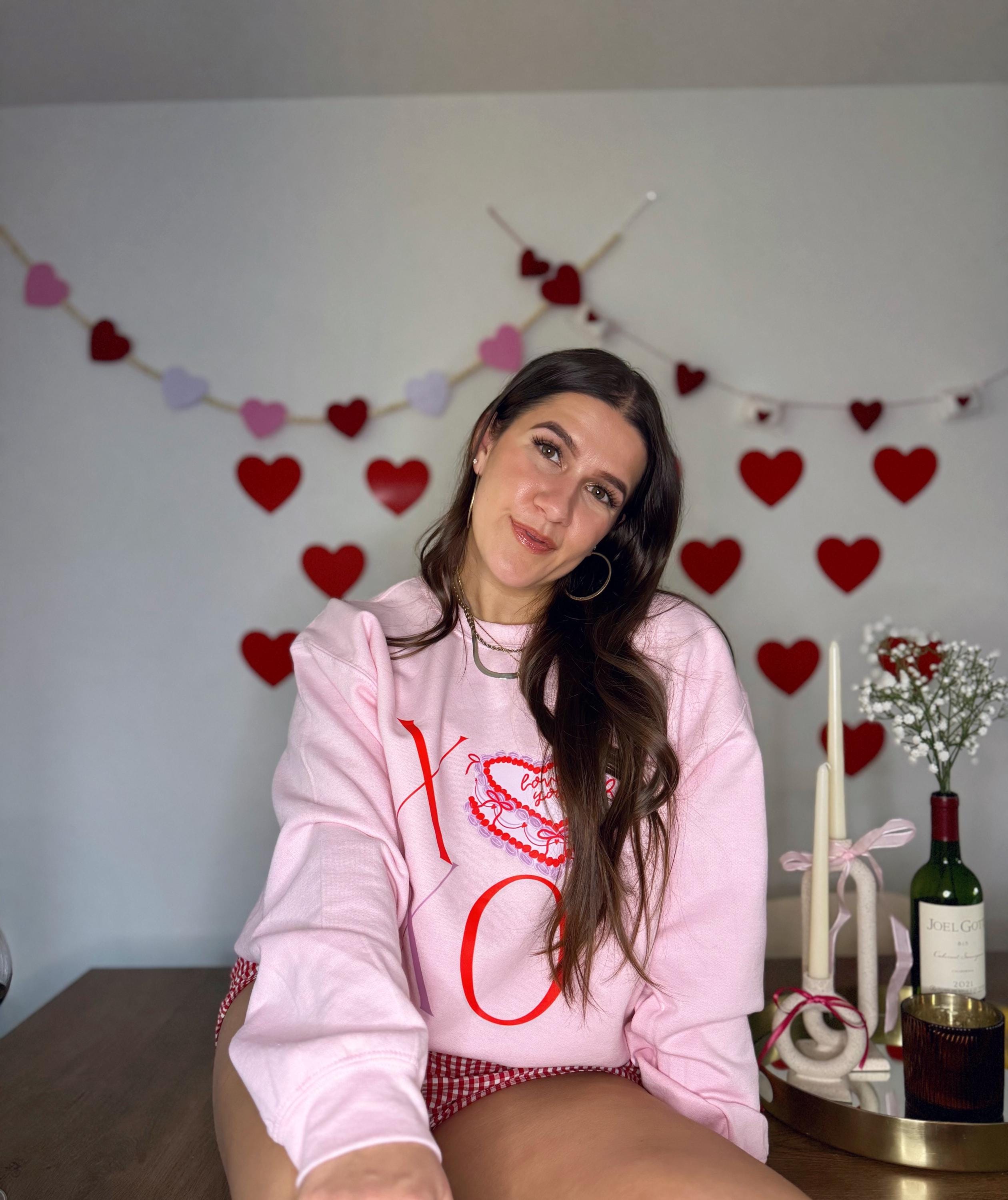It’s love season & this one’s for the girls 💌🎀The cozy pullover you won’t want to take off! True to size.. but size up for a cute oversized fit. Model is wearing a M for an oversized fit.